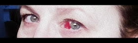 Natten mellan fredag och lördag vaknade jag av att mitt ena öga kliade som attan! Jag gnuggade och gnuggade och efter ett tag gick det över och jag kunde somna om men nästa morgon såg mitt öga ut så här: